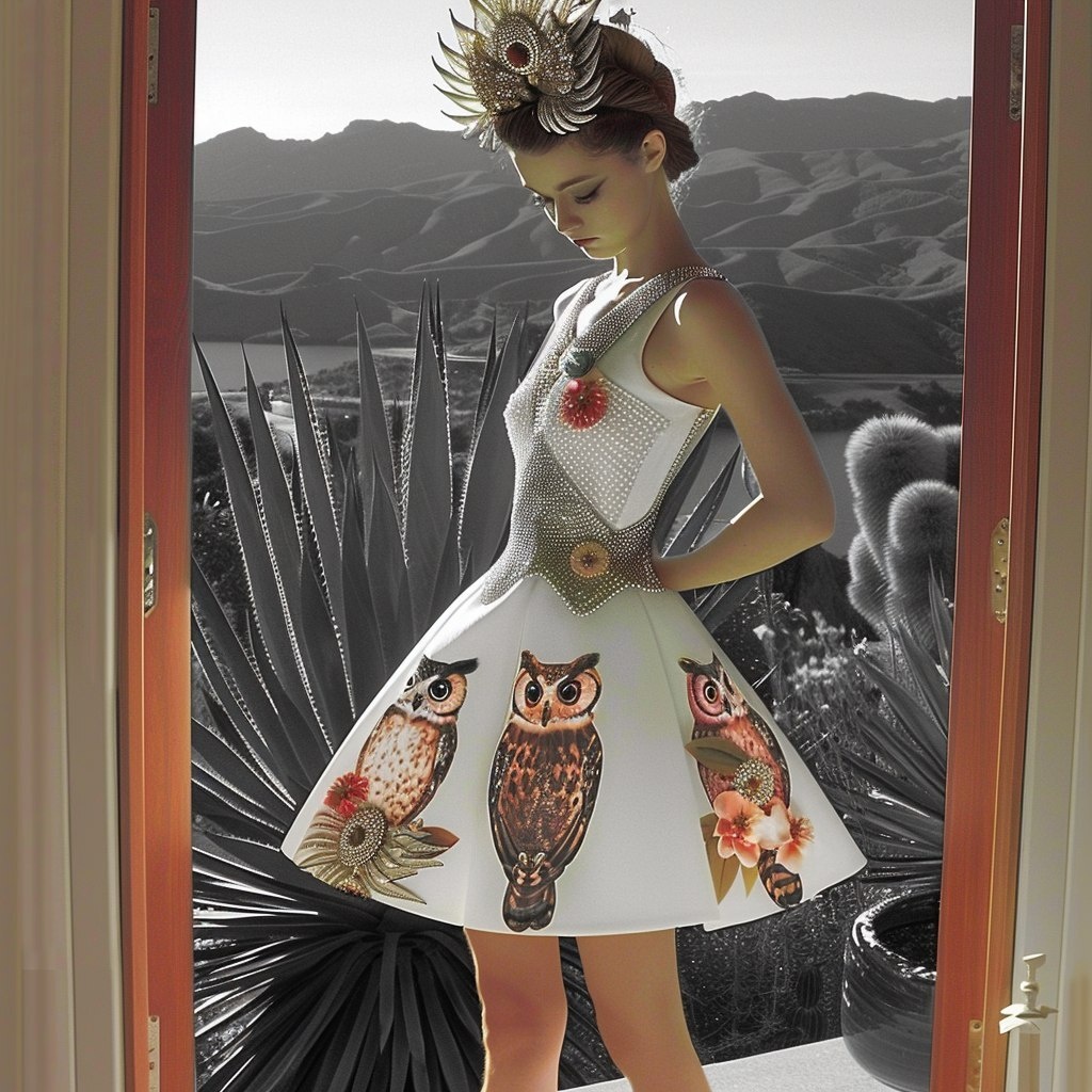 Создано на основе запроса: my monster in a fiber optic floral owls dress by Emilio Pucci --- Автоперевод: Мой монстр в волоконно -оптическом платье с цветочными совами от Эмилио Пуччи Отлично выглядит? 🤔 https://dzen.ru/id/65c0c65c86e4f837c27b24d7 #ИИ #AI #нейросеть #midjourney #art