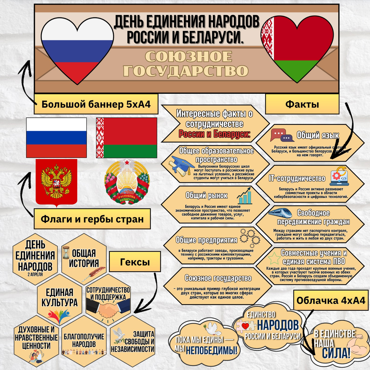 Оформление «День единения народов России и Беларуси. Союзное государство» (7 апреля) | Разговоры о важном (РОВ)