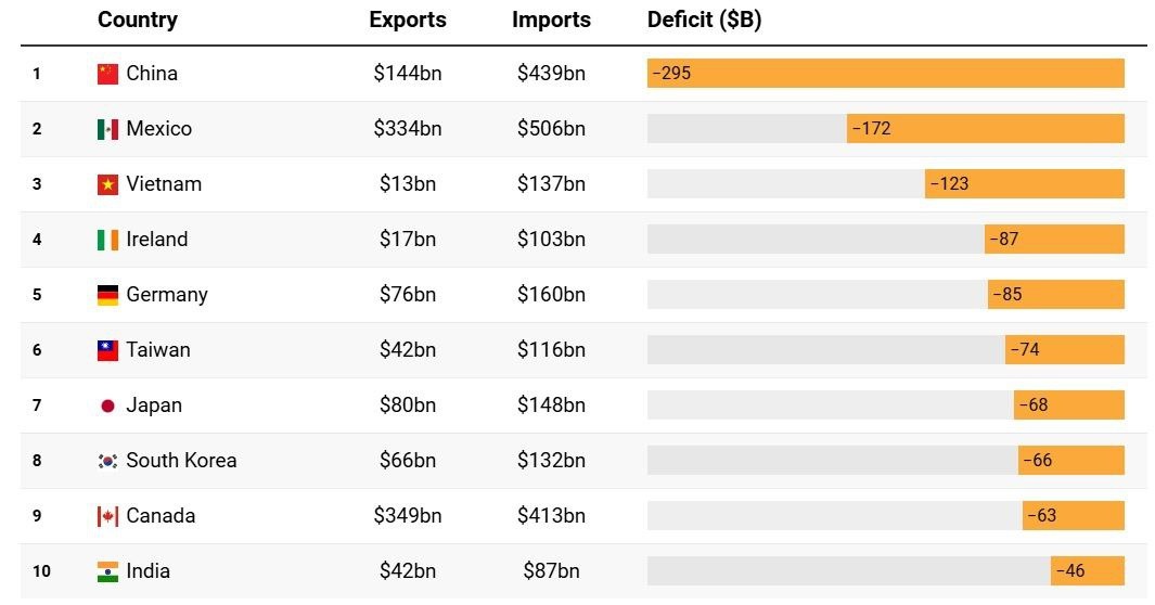 Обида Трампа обоснована – торговый дефицит США размером с бюджет Саудовской #Аравии и очень хочется переманить производителей к себе в США.