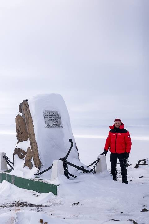 Сегодня перед въездом в посёлок Диксон стоят крест и памятник с табличкой в память о Петере Тессеме.