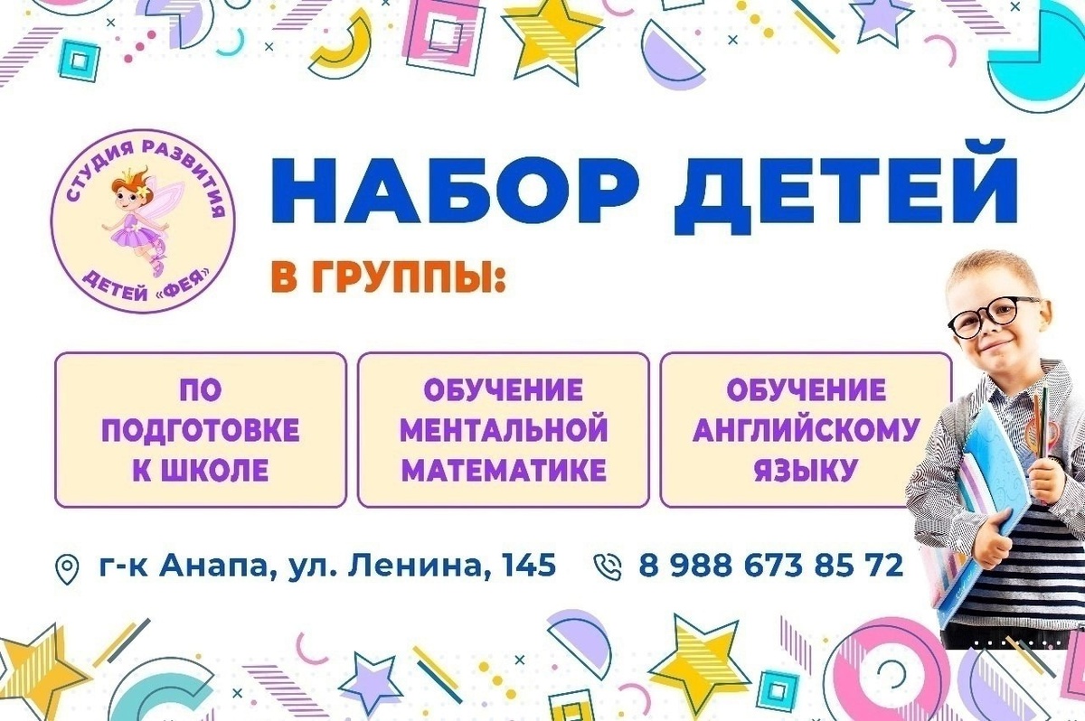 ✍️Студия развития детей «Фея» в Анапе ведёт набор детей в возрасте от 5 лет в группы ментальной математики, подготовке к школе, английского языка.