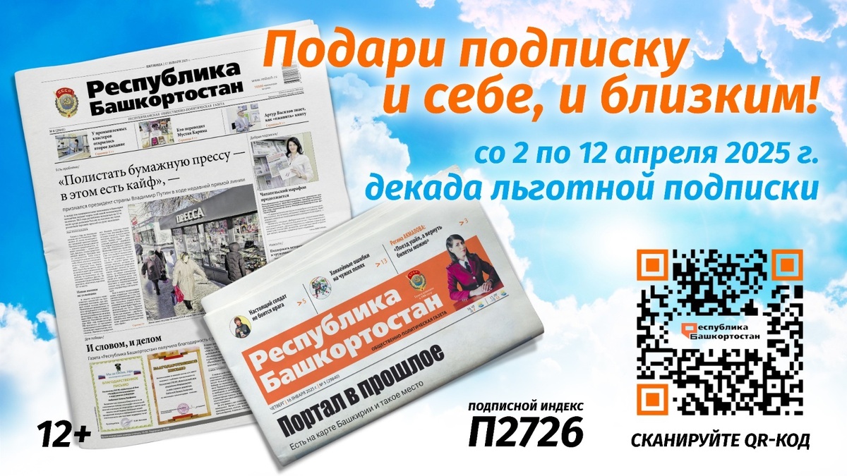 Дорогие читатели! Стартовала Всероссийская декада льготной подписки, которая продлится десять дней, до 12 апреля. А это значит, что в течение этого времени у вас есть отличная возможность подписаться на любимую газету «Республика Башкортостан» по сниженным ценам, которые действуют в отделениях почты России.