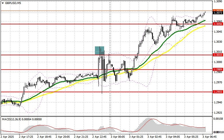 https://basechop.ru/wordpress/?p=36817 Вчера была образовано несколько точек входа в рынок. Давайте посмотрим на 5-минутный график и разберемся с тем, что там произошло. В своем утреннем прогнозе я обращал внимание на уровень 1.2903 и планировал от него принимать решения по входу в рынок. Снижение и формирование там ложного пробоя привели к точке входа на покупку фунта, что вылилось в рост пары более чем на 40 пунктов. Во второй половине дня ложный пробой в районе 1.3010 привел к точке входа на продажу фунта и к падению пары более чем на 60 пунктов. Для открытия длинных позиций по GBP/USD требуется: Отсутствие значимых торговых пошлин по Великобритании и в целом довольно ожидаемая тарифная политика Трампа – все это помогло фунту с ростом в конце вчерашнего дня, который продолжился в ходе сегодняшней азиатской сессии. Сегодня в первой половине дня ожидаются данные по индексу PMI для сферы услуг Великобритании и композитному индексу PMI. Хорошие цифры продолжат рост фунта против долла