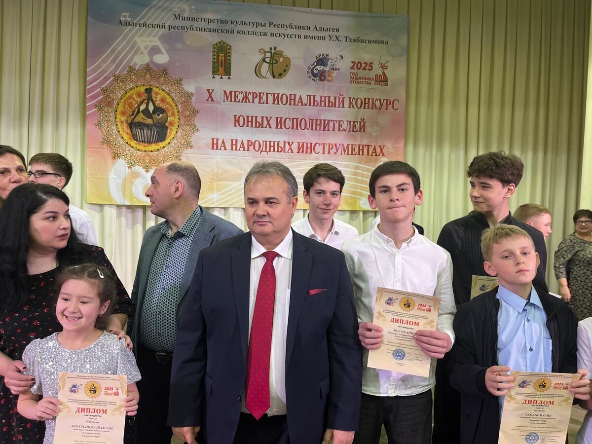 В Адыгейском республиканском колледже искусств им. У.Х.Тхабисимова прошел Х Межрегиональный конкурс юных исполнителей на народных инструментах, посвященный 80-й годовщине Победы в Великой Отечественной войне. В рамках конкурса в номинации «Ансамблевое музицирование» учащиеся Детской школы искусств г. Адыгейска – Анзор Псеуш и Астемир Каде (преподаватель Сима Гакаме) выступили в составе дуэта аккордеонистов и были удостоены диплома лауреата III степени. Поздравляем наших талантливых учащихся и преподавателя с заслуженной наградой!
