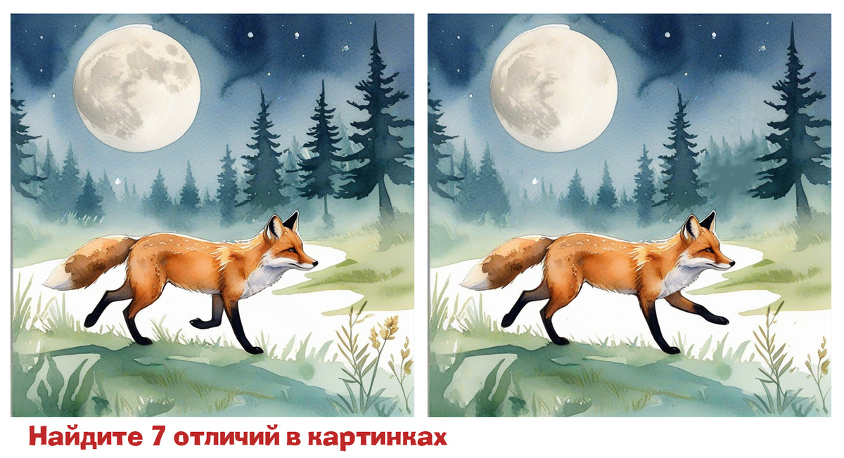 Найди 7 отличий и помоги лису разобраться в ночных загадках.