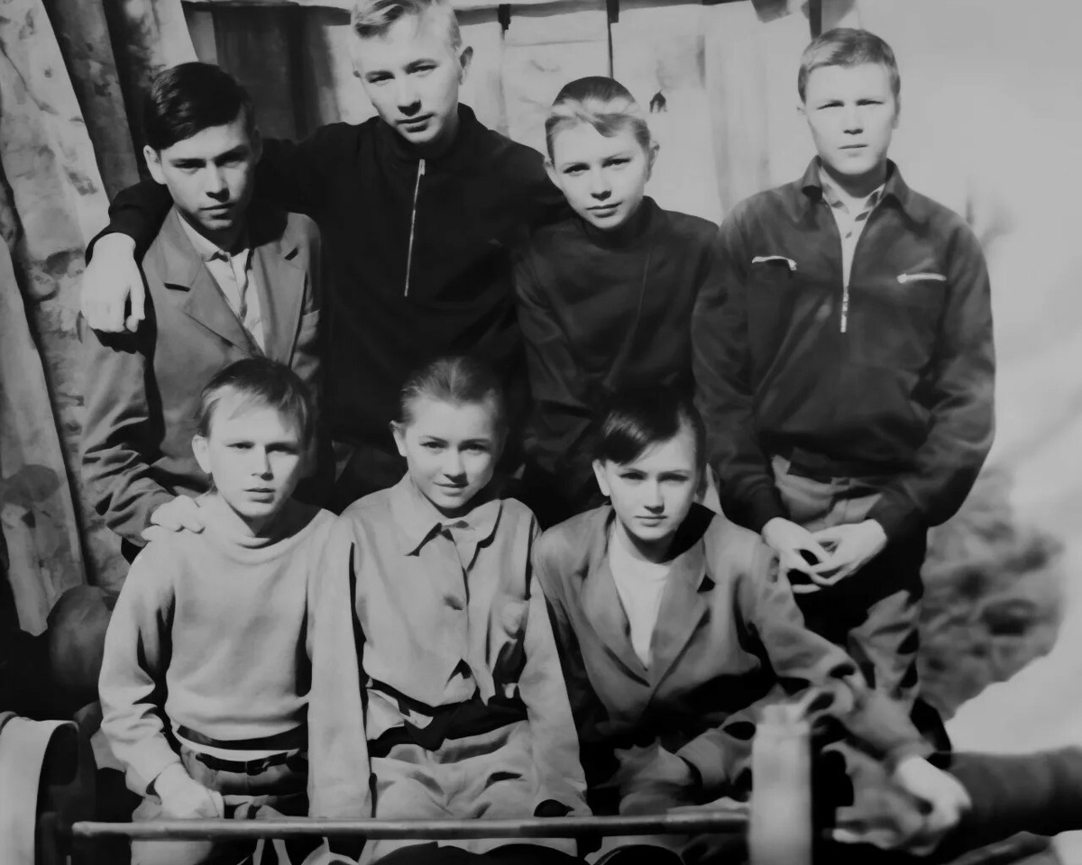 Тубинск, 1963 год. Стоят Айрат Малабаев, Виктор и Миша Галкины, Сергей Павлушкин, сидят Виктор Павлушкин, Рашит Малабаев, Шамиль Малабаев.