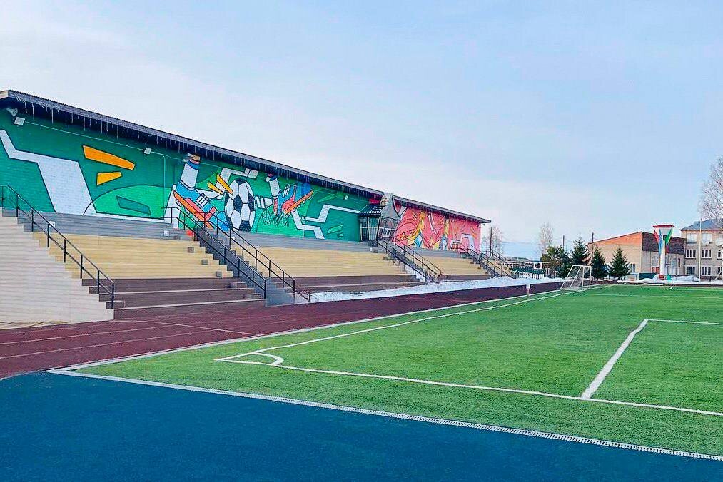 ✔️ деревянные трибуны заменены на современные полимерные скамьи (износостойкие, экологичные, адаптированные к сибирскому климату);