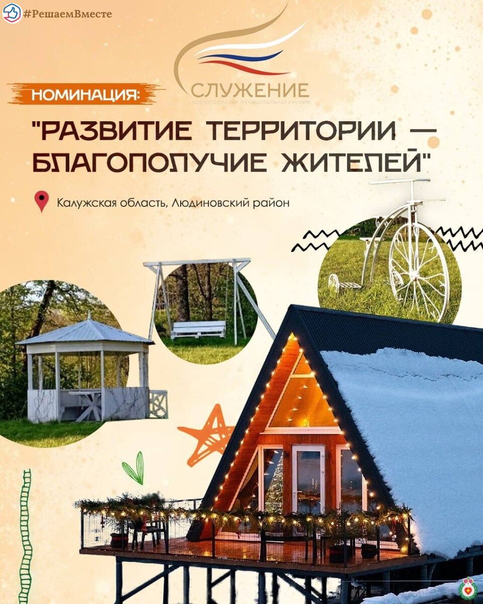 ✔️В финал от Калужской области в номинации «Развитие территории — благополучие жителей» вышел Людиновский район. Благодаря муниципальной инициативе были созданы три базы отдыха: «На воде», «Подкова» и «Три пескаря». Туристический поток вырос на 30%, а район планирует стать участником федеральной программы развития туризма!
