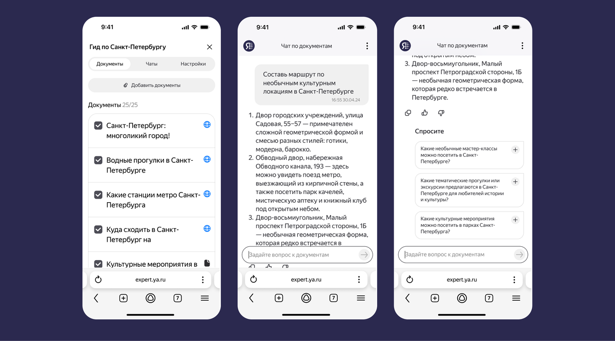 Компания Яндекс запустила бета-версию нового сервиса Нейроэксперт, который может автоматически извлекать информацию из различных файлов и ссылок, загруженных пользователями. В сервис можно загрузить документы, таблицы, презентации, аудио- и видеофайлы, и Нейроэксперт создаст из них удобную базу знаний. Этот инструмент помогает не только находить ответы на конкретные вопросы, но и пересказывать содержание файлов, делать выводы, сравнения или генерировать тексты в нужном стиле. Нейроэксперт напоминает привычные облачные папки, в которые можно загружать до 25 различных файлов. С помощью сервиса пользователи могут искать информацию по этим данным, задавая вопросы в режиме диалога, как в общении с чат-ботом. Примечательно, что сервис не добавляет данных «от себя», а использует только информацию из загруженных источников. Кроме того, сервис можно использовать в повседневной жизни. Например, для быстрого решения споров по правилам настольных игр или для поиска информации по видеообзорам товар