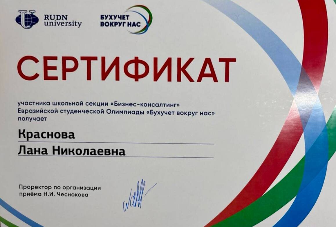 XI Евразийская олимпиада студентов по бухгалтерскому учету «Бухучет вокруг нас», школьная секция «Бизнес-консалтинг» 🤝 Куратор предпринимательского класса Попова Маргарита Ефимовна о финале олимпиады:⤵️ Российский Университет дружбы народов имени Патриса Лумумбы провел учебно-творческий конкурс «Бизнес-консалтинг» для школьников 10-11 классов в рамках Евразийской студенческой олимпиады «Бухучет вокруг нас». 📚 Цель конкурса – развитие интеллектуальных и творческих способностей у талантливых школьников и стимулирование их к обучению по основным образовательным программам высшего образования – программам бакалавриата и специалитета. 🎓 В финал были отобраны 12 команд из разных регионов России (36 участников), набравших наибольшее количество баллов, которые под руководством наставников (экспертов) усовершенствуют свои работы. Среди финалистов была команда нашей школы 10 «А» - предпринимательского класса. 🏫 Финальный этап конкурса прошел 29 марта 2025. Тематика творческого конкурса