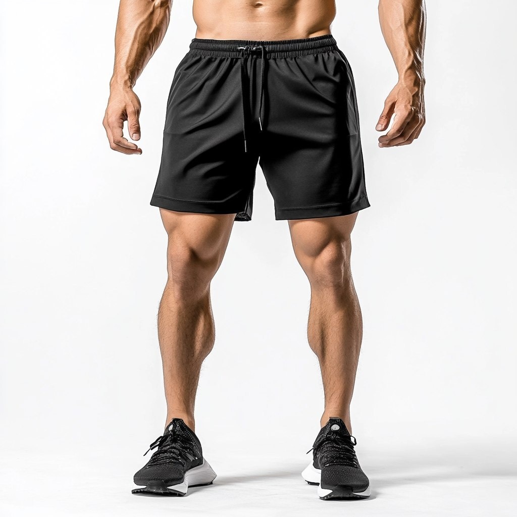 Создано на основе запроса: european men's black long sports black shorts till the middle of the knee, front view, white background