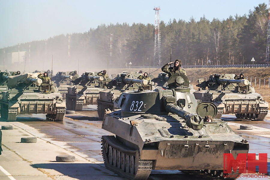 В ней задействовано свыше 220 единиц современной и модернизированной на белорусских предприятиях колесной и гусеничной техники. Всего представлено 24 парадных расчета.