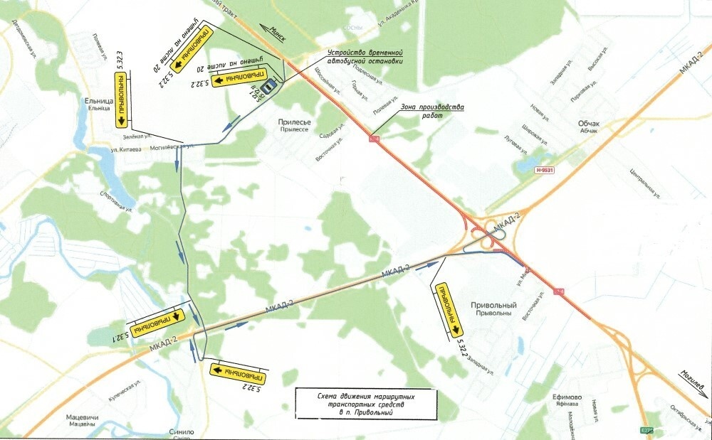 Альтернативные пути включают автодороги М1/Е30 Брест (Козловичи) — Минск — граница Российской Федерации; Н9050 Ельница — Королищевичи — Новый Двор; Н9082 Обчак — п. Сосны; Н9531 Смолевичи — Самохваловичи — Негорелое.