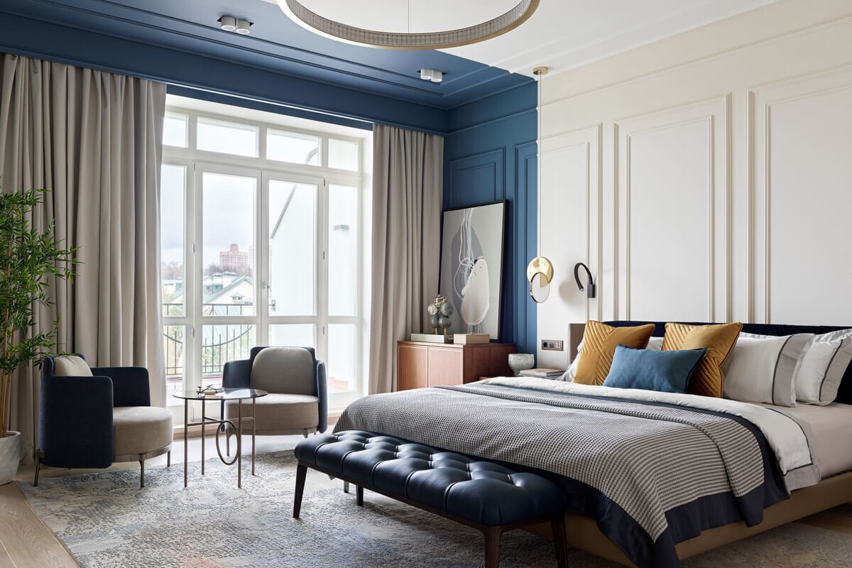 Панелями с текстильной обивкой можно оформить как всю стену целиком, так и ее часть. Например, это очень удобно, когда стоит задача выделить определенную функциональную зону цветом или фактурой. Здесь можно использовать контрастные цветовые решения, принты, ручную роспись. Такая деталь станет интересной деталью, а возможно, и главным украшением интерьера.
