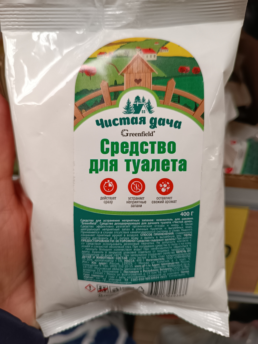 Начну с дачных товаров. Тут средство для туалета появилось от бренда ГРИНФИЛЬД.