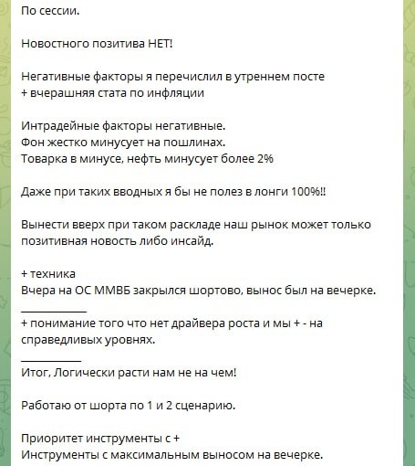 + скрин с планом на день с факторами ЗА ШОРТ из закрытого ТГ канала.