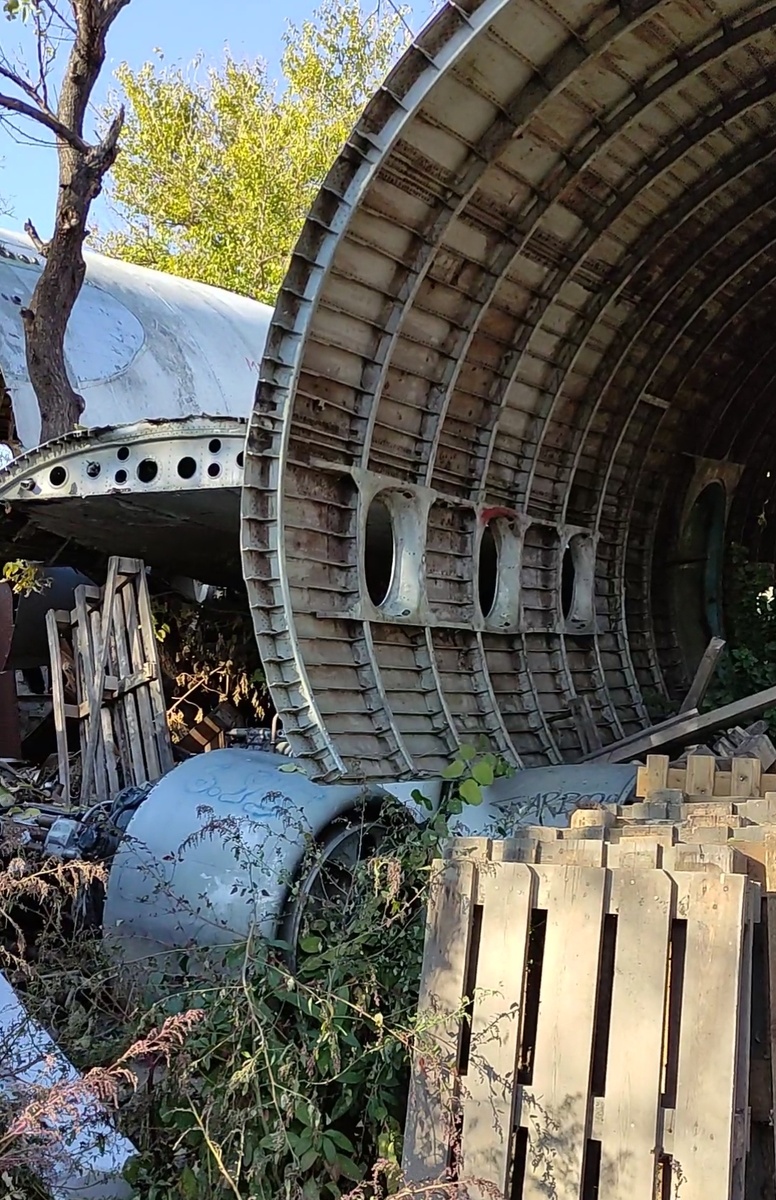 Разрушенный пассажирский самолёт Ан-10 во дворе частного дома в Краснодаре: загадочная диковинка