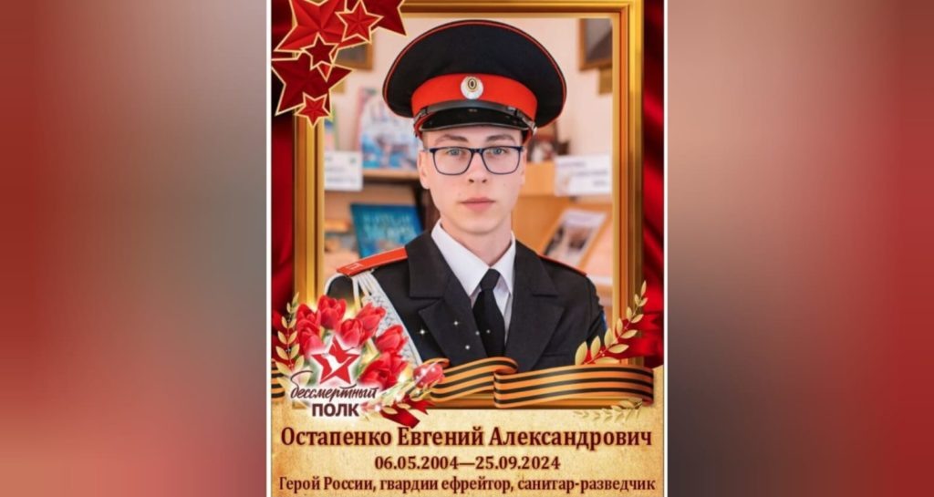 Указом Президента выпускник Тимашевского казачьего кадетского корпуса, боец СВО, гвардии ефрейтор Евгений Остапенко посмертно удостоен высшей государственной награды — «Золотой Звезды» Героя России. Прорвав оборону противника, он взял опорный пункт, уничтожив 17 неонацистов. Его действия сорвали атаку врага на позицию наших войск. 1 апреля временно исполняющий обязаности командующего войсками Южного военного округа генерал-лейтенант Владимир Кочетков и заместитель губернатора Краснодарского края Александр Власов передали высшую государственную награду матери Евгения Остапенко. Вечная слава героям!