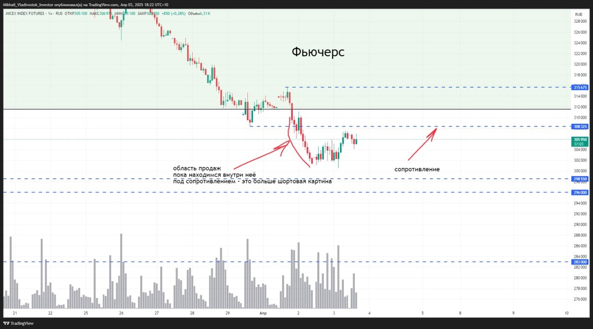 По фьючу всё что ниже 308 325 - это по большей части шортовая картина