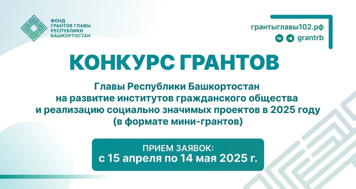 Прием заявок на конкурс стартует 15 апреля на сайте грантыглавы102.рф. В разделе «Документы» уже можно ознакомиться с Положением конкурса и подробной информацией о требованиях к участникам, направлениях проектов, условиях и порядке предоставления грантов. Форма заявки на сайте также будет открыта 15 апреля.