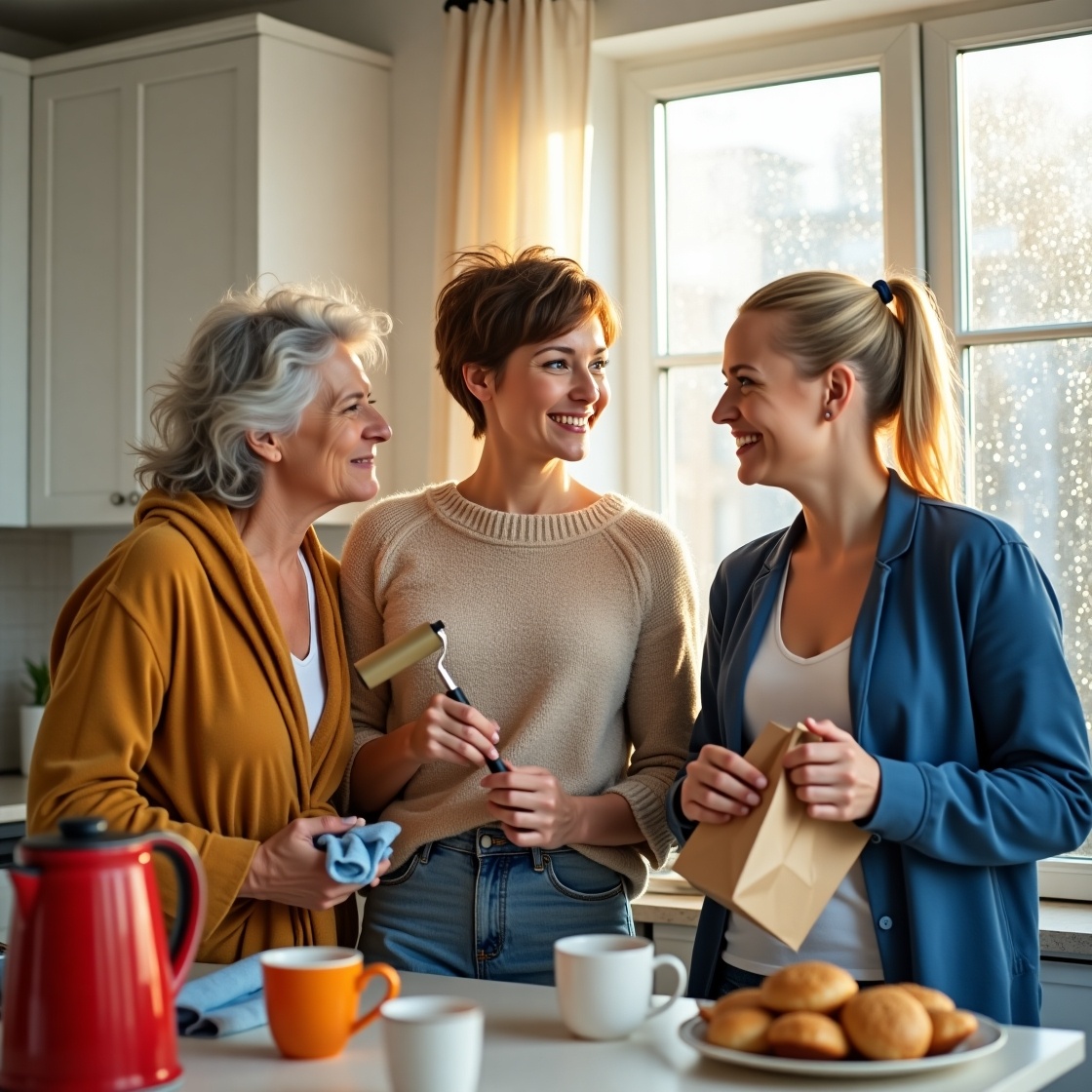 Мы провозились часа два. Вытерли пол, собрали воду в вёдра, подставили тазик под раковину, где ещё капало. Сантехник приехал, буркнул что-то про старые трубы и ушёл чинить. А мы с Ниной Павловной сели на кухне — она налила мне чаю, поставила тарелку с печеньем.