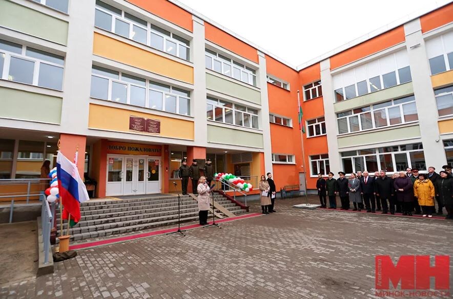 Митинг завершился открытием информационной таблички на входе в здание школы. Ее открыли внук и внучка героя вместе с представителями БРСМ и пионерской организации Московского района. Почетный караул несли военнослужащие Минской военной комендатуры.