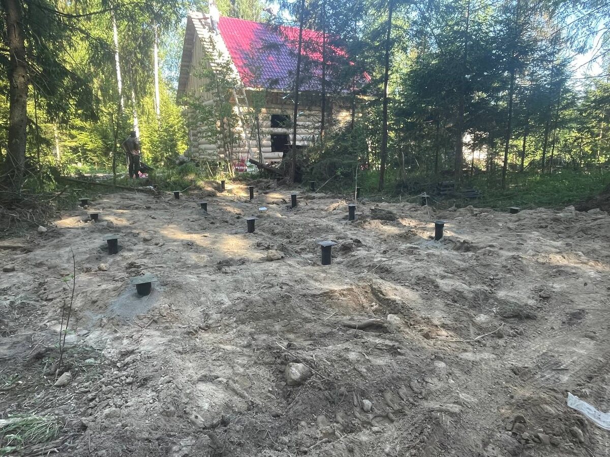 Клиент планировал построить двухэтажный дом из бруса площадью 120 м² в посёлке под Санкт-Петербургом. Участок ровный, но геологические изыскания показали неожиданную проблему: на глубине 1,5 метра залегали слои суглинка с близким уровнем грунтовых вод. Традиционный ленточный фундамент потребовал бы сложных работ по дренажу, аренде техники и ждать усадки 6–12 месяцев. Это не устраивало заказчика — сроки сдачи дома горели. Решение: