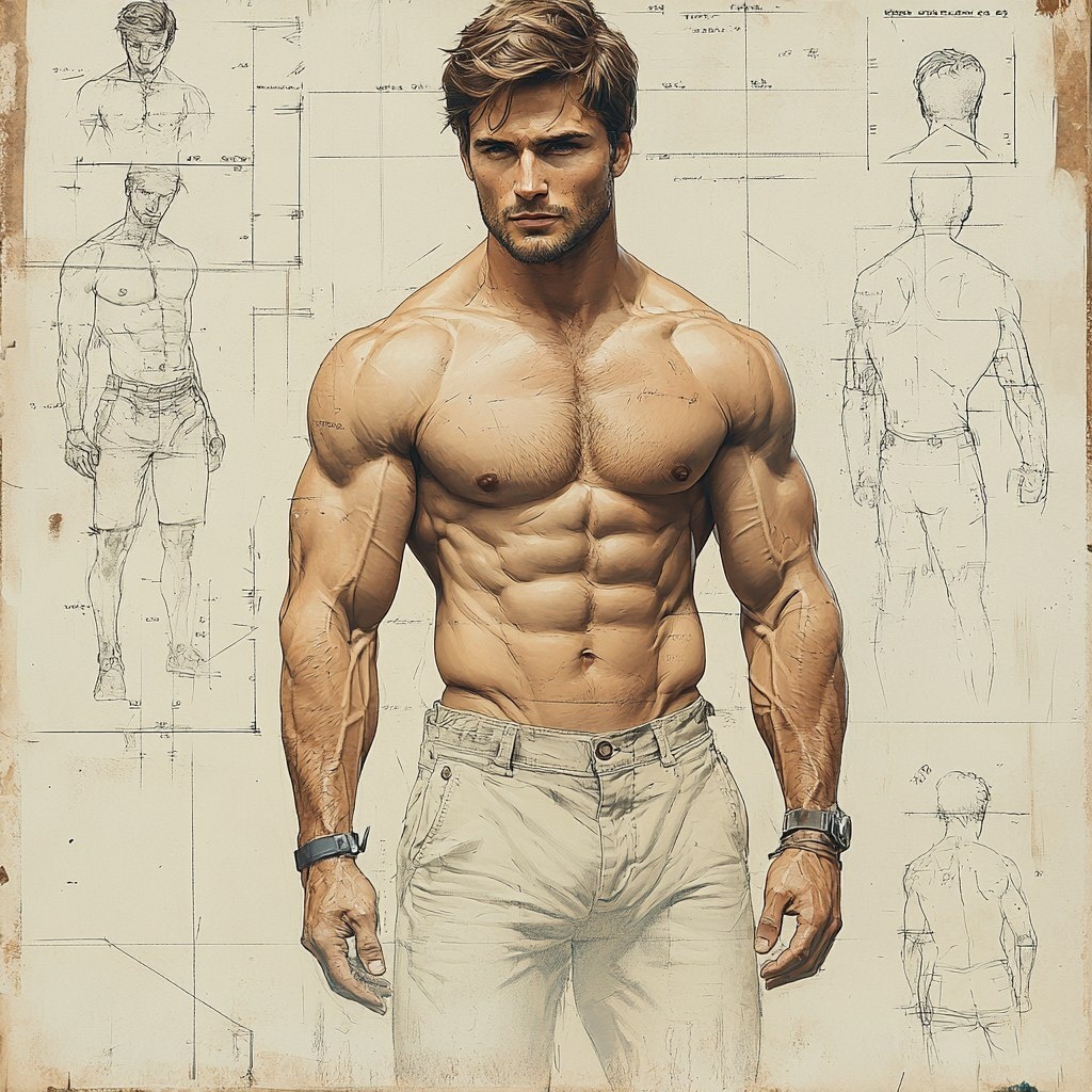 Создано на основе запроса: Male models have naturally robust muscle lines with obvious shoulder width and narrow waist, low body fat percentage, and focus on overall proportion coordination. --- Автоперевод: Мужские модели имеют естественные надежные мышечные линии с очевидной шириной плеча и узкой талией, низким процентом жира в организме и сосредоточены на общей координации доли. Круто выглядит? 🤔 https://dzen.ru/id/65c0c65c86e4f837c27b24d7 #ИИ #AI #нейросеть #midjourney #art