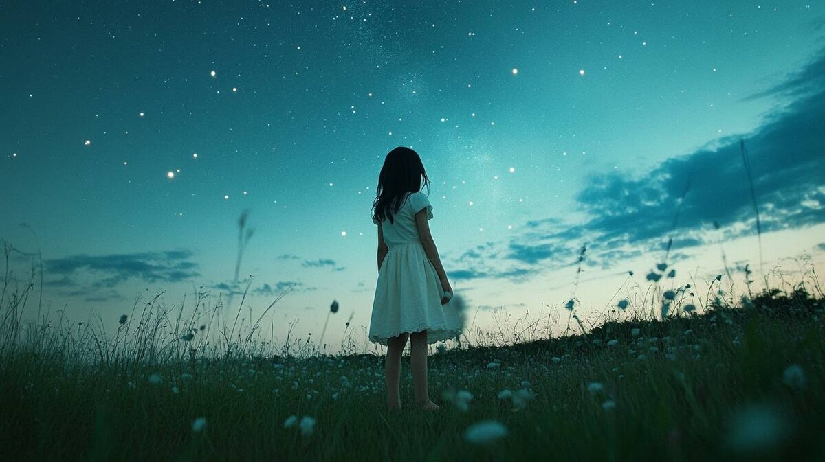 Воспоминания об иной жизни Она стояла в поле, где тонкие стебли травы касались её босых ног. Ночь обволакивала землю тёмным бархатом, а небо распахнулось над ней бездонной пропастью, усыпанной бриллиантами звёзд. Подняв голову, она смотрела на одну особенную звезду – яркую, пульсирующую, словно живую. Что-то неизъяснимое соединяло её с этим далёким светилом. Невидимая нить протянулась между ними через всю вселенную, и она ощущала это связующее тепло всем своим существом. Холодный ветер пробежал по полю, но она не почувствовала озноба. Внутри неё горело осознание – она лишь луч той далёкой звезды, посланный на землю. Частица чего-то величественного и вечного, заключённая в хрупкую человеческую оболочку. Губы её дрогнули в улыбке. Странно было понимать свою ничтожность перед лицом бесконечности и одновременно ощущать в себе частицу этой самой бесконечности. Она не была одинока. Никогда не была. Трава шелестела под её ступнями, когда она медленно побрела домой, унося с собой тайну, о
