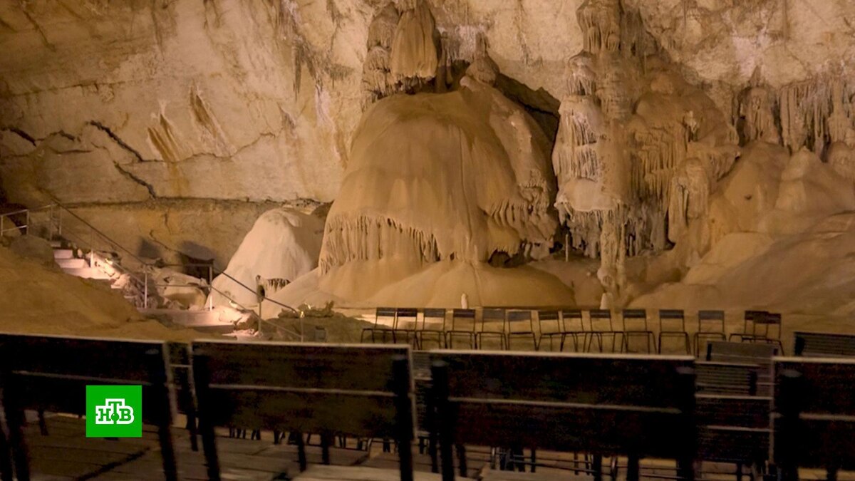 В пещере аншлаг — все 100 мест выкуплены, большинство заблаговременно. Концерты здесь проходят уже третий год. Семь лет прошло со дня находки «Тавриды». В подземелье, возраст которого составляет около пяти миллионов лет, обнаружены десятки минералов, которые больше в России нигде не встретить.