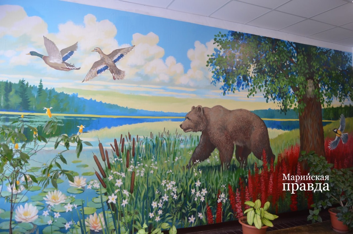 Внешне Марисолинская средняя школа Сернурского района Марий Эл похожа на множество других – типовые проекты, что тут скажешь. А вот когда оказываешься внутри, впечатление резко меняется. Это настоящая сказка: картинная галерея прямо в коридоре, расписанные стены: пейзажи, река, добродушный мишка косолапый, терем-теремок, гуси-лебеди… Это надо видеть, думаю, что вторую такую школу вряд ли где найдешь. Автором этого рукотворного чуда является школьный учитель рисования и информатики Алексей Григорьев.