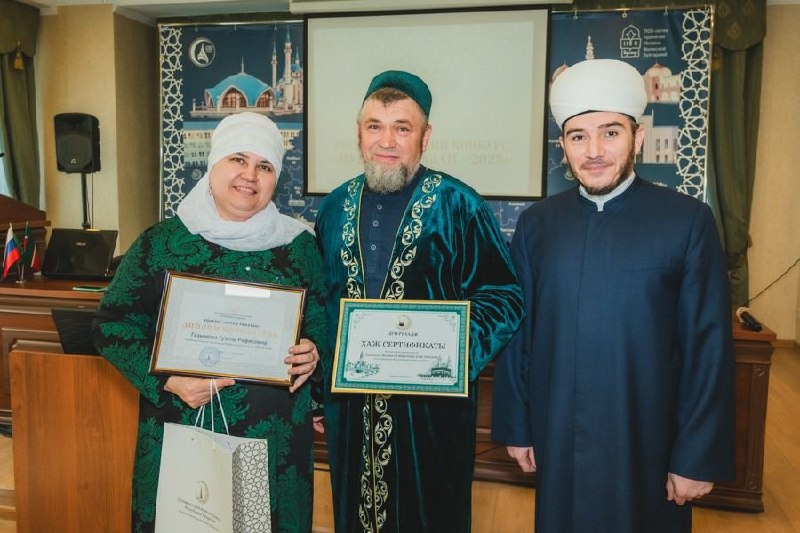 🌟Победителю конкурса «Нурлы Рамазан» вручили сертификат на хадж! 🎉Сегодня объявили победителя конкурса на лучшее оформление общественных мест в рамках Рамадана-2025. В этом году в нем приняли участие 38 объектов – столько локаций было украшено в Рамадан! Особую активность в этом году проявили мечети и исламские просветительские центры! 🌙Победителем стала семья Газымовых из села Баланны Муслюмовского района. Чета участвует в конкурсе ежегодно. Глава семьи Джамиль хазрат – имам села и сам организовал конкурс среди односельчан. В украшенной им мечети в этом году на таравих намазы приходили каждый день более 30 человек. 👏Благодарим всех участников конкурса «Нурлы Рамазан» за вклад в создание праздничной атмосферы в Рамадан в Татарстане!