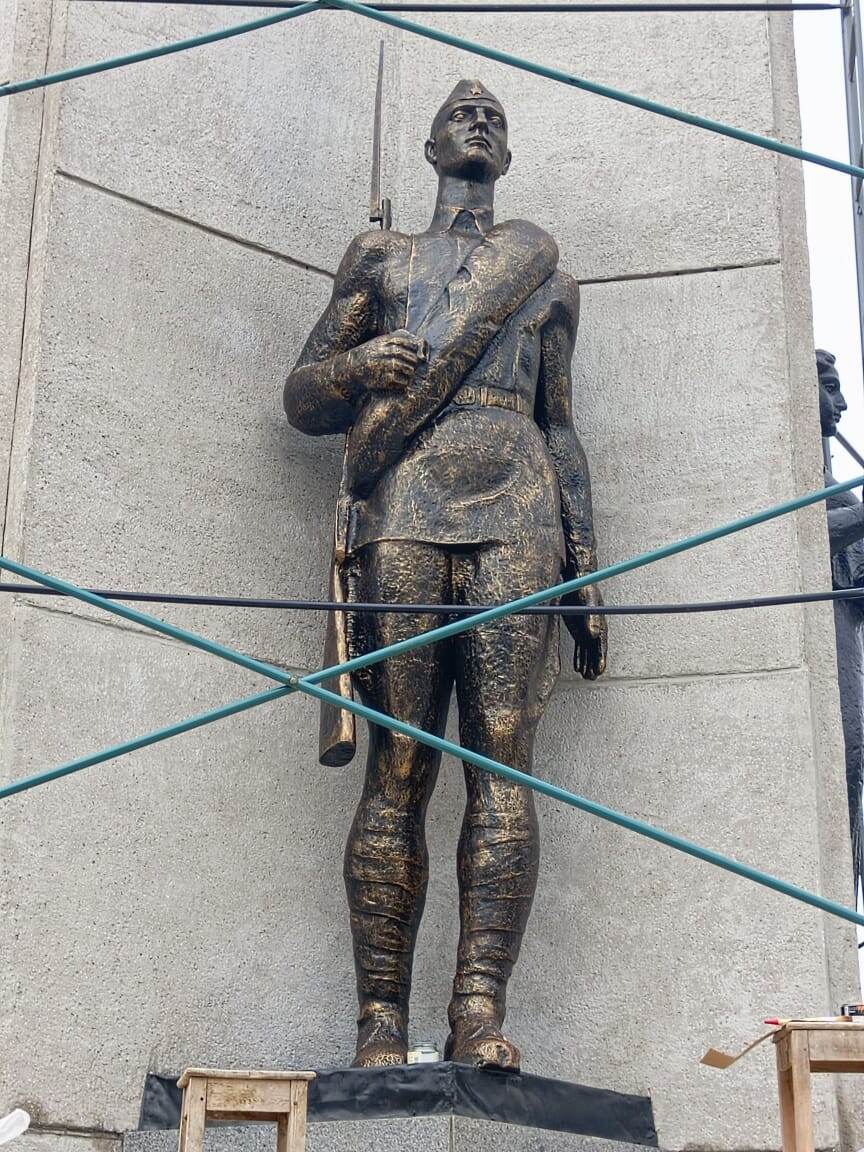 Уже сейчас скульптуры начали покрывать специальным составом, который по фактуре схож с первоначальным обликом. Реставрацию согласовывали с одним из создателей монумента — омским скульптором Сергеем Голованцевым.