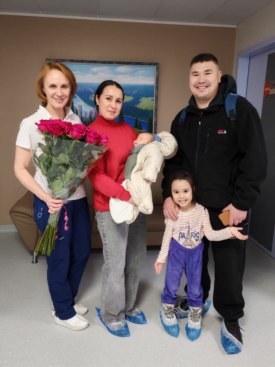 Снова о чудесах от врачей Отделения беременности высокого риска КГ MD GROUP на Севастопольском ГК "Мать и дитя". Точнее нет, не о чудесах...в нашем госпитале такие истории уже ежедневная практика! Мы дейсвтительно помгаем сохранить самое дорогое! Рассказывает Шаманова М.Б. заведующая отделением беременности высокого риска КГ MD GROUP на Севастопольском. В обновленном и увеличенном составе семья Ксении уезжает домой в Якутию! Первую свою беременность Ксения выносила без проблем, в срок родилась доношенная девочка 2890/51 см. После такого счастья не возможно было представить, что следующие свои 3 беременности Ксени потеряет в 1 триместре, но несмотря на это, Ксении удается родить 2й раз (опять рождается девочка 2890/51 см). Отметим, что эту беременность пациентка вынашивает с акушерским пессарием. Однако после вторых родов следующая желанная беременность заканчивается потерей в сроке 14-15 недель , причем выкидыш происходит после хирургической коррекции ИЦН ( у Ксении излиливаютс
