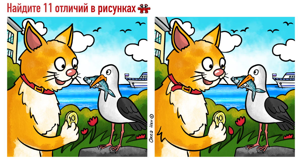 Сможете найти 11 отличий на картинках? Зачдачка на внимательность для всей семьи
