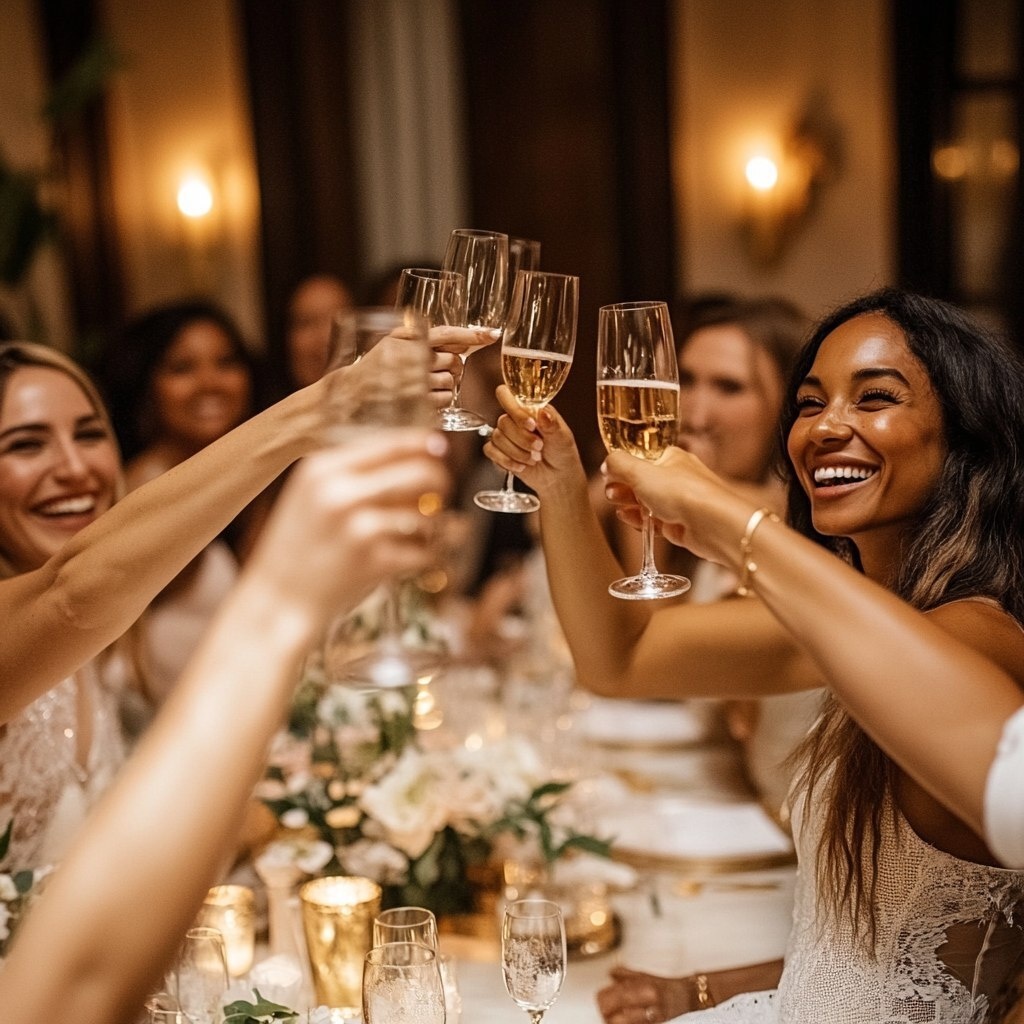 Создано на основе запроса: Women raise their glasses to celebrate with all the guests in the room
