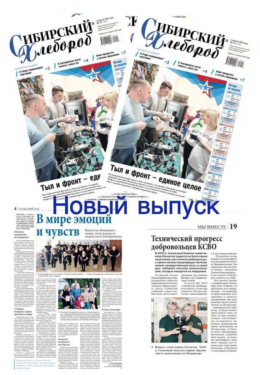 🖌Вышел новый выпуск газеты «Сибирский хлебороб» от 3 апреля Они приближают победу. Рассказываем, как делегация Ужурского района посетила фестиваль «День тыловика» в Назарово. Пишем о юных талантах из Златоруновска. А еще интересные рассказы о наших земляках, полезные объявления и актуальные ответы на вопросы. Кроссворды и детский уголок! А еще сообщаем, что на Почте России началась подписка на переодически издания, в том числе на газету «Сибирский хлебороб».