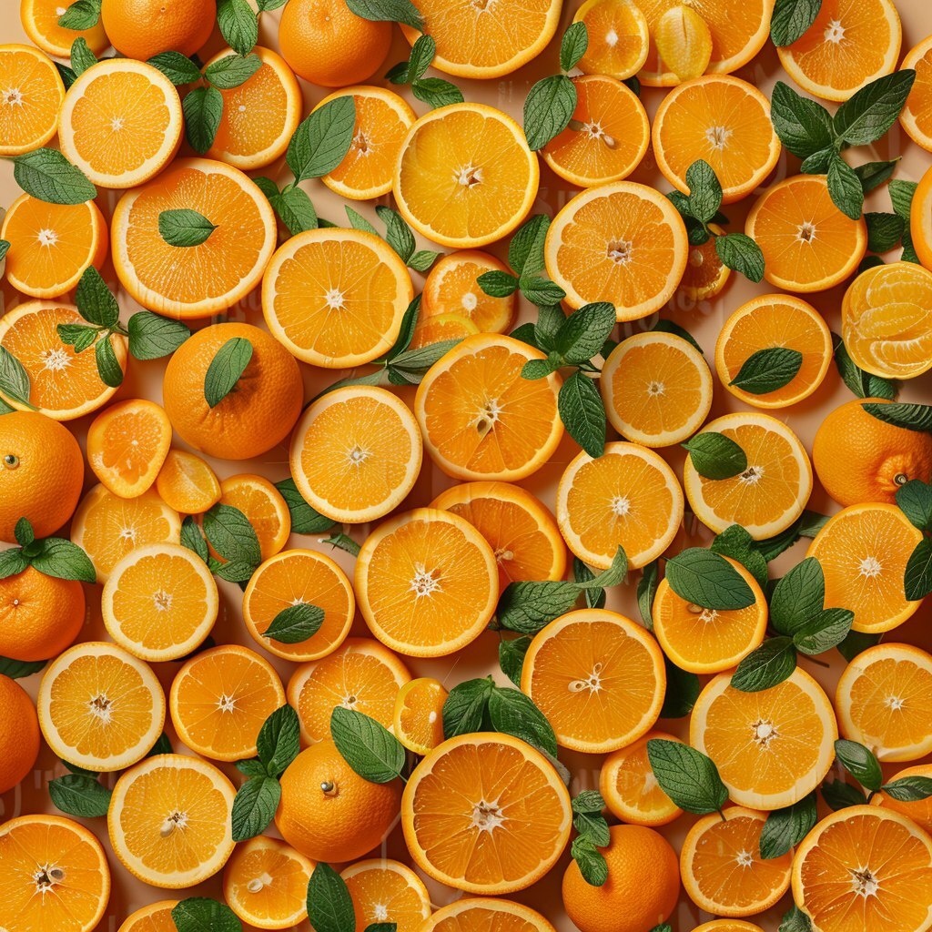 Создано на основе запроса: A hyper-realistic, highly aesthetic photo of a large number of fresh oranges, both sliced and whole, completely covering the entire background from edge to edge. No empty space, no visible background only juicy orange slices, whole oranges, and scattered green mint leaves for contrast. Macro photography style, vibrant orange color tones, natural soft lighting, top-down view. Every detail is sharp and realistic, creating a fresh, appetizing composition. --- Автоперевод: Гиперреалистичная, высоко эстетическая фотография большого количества свежих апельсинов, как нарезанных, так и целых, полностью покрывающих весь фон от края к краю. Классно получилось? 🤔 https://dzen.ru/id/65c0c65c86e4f837c27b24d7 #ИИ #AI #нейросеть #midjourney #art