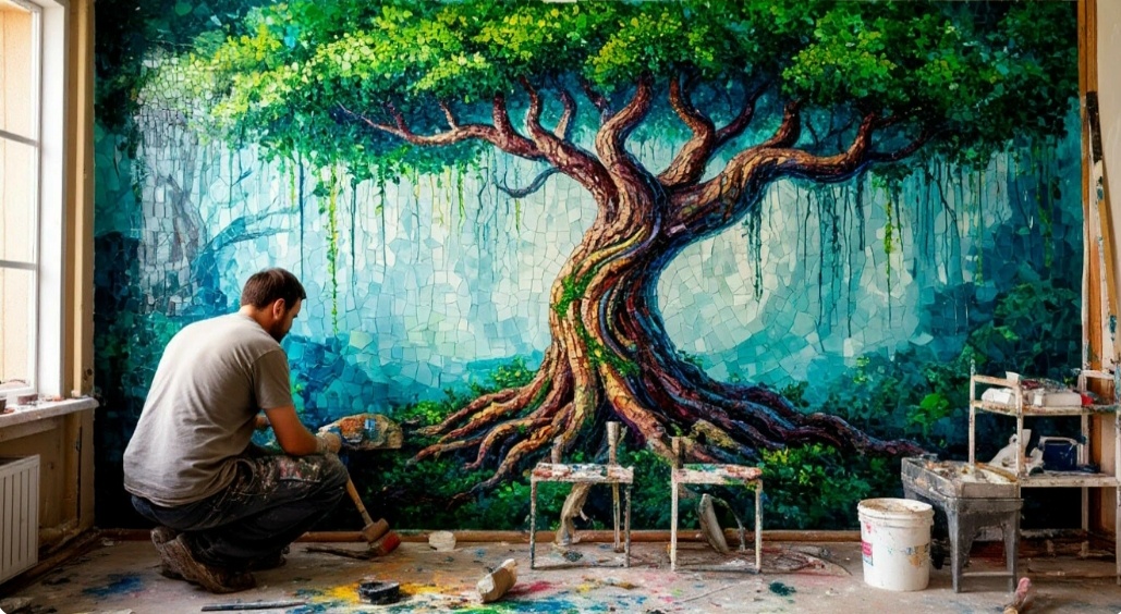 — Это же та разбитая плитка! — она коснулась стены, где осколки складывались мозаикой в фантастическое дерево с причудливыми листьями.
