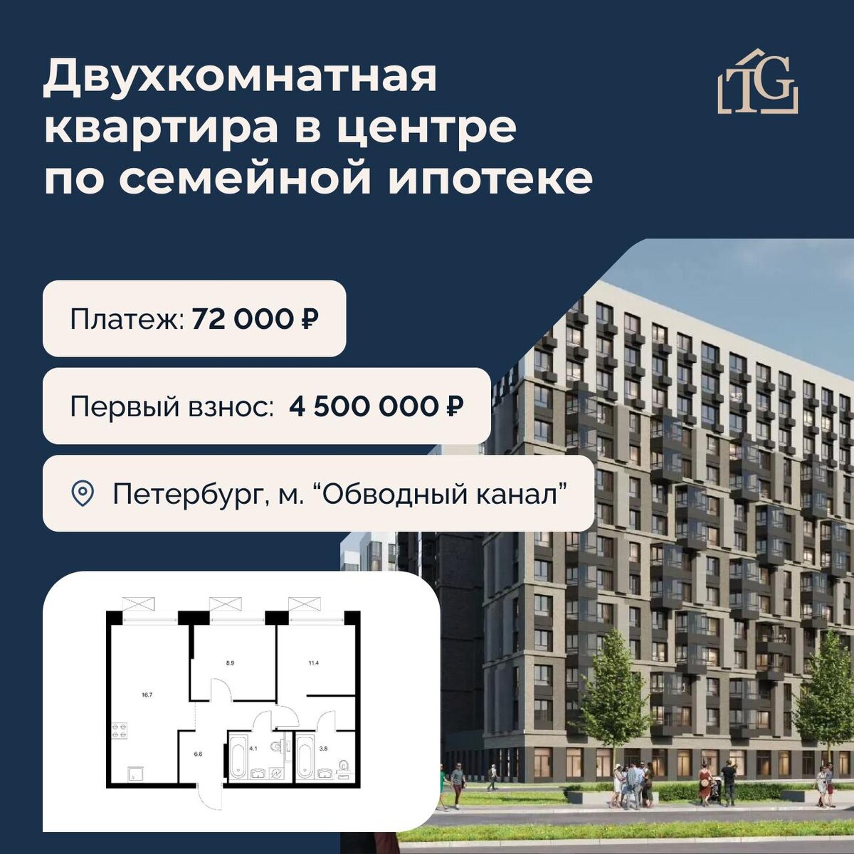 ➖Первоначальный взнос: 4 500 000 ₽