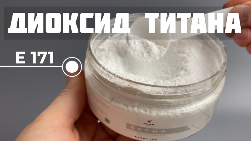 Полное видео про диоксид титана можно посмотреть здесь Белый универсальный краситель, другими словами диоксид титана, Е 171 - пищевой краситель, имеет вид порошка белого цвета, у которого полностью отсутствуют вкус и запах. Диоксид титана безопасен для организма и не вызывают аллергических реакций. Однако налегать на него сильно не стоит. Его рекомендуемая дозировка от 0,003 до 0,007 % от массы продукта. Кого-то пугает, что диоксид титана в странах Европы считают опасным, но доказательной базы для этого нет. На данный момент не существует другого белого красителя кроме диоксида титана. Если использовать вместо него осажденный мел (особым образом обработанный известняк) то неизвестно ещё к каким последствиям может привести такая альтернатива. В КондиPRO универcальный белый краситель представлен в фасовке как 100, так и 50 грамм. Применение: Используется для того, чтобы придать продукту идеальный белый цвет. Широко применяется в фармацевтике для придания белизны оболочкам таблеток и косм