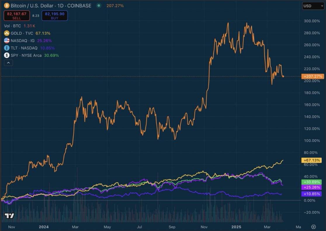 Это уже не игра — это долговой кризис В октябре 2023 года Йеллен фактически признала: США больше не могут финансировать себя за счёт выпуска долгосрочного долга — рынок облигаций просто не выдерживает. Она «починила» это временно — начала размещать больше коротких T-Bills. Типичное «пнуть банку дальше по дороге». Но проблема не исчезла. За ближайшие 4 года США нужно рефинансировать около $28 трлн долга. И Трамп с Бессентом (новым кандидатом на пост главы ФРС) отчаянно хотят, чтобы доходности пошли вниз. Только так они смогут рефинансировать этот долг по вменяемым ставкам. Ради этого сейчас идёт целая кампания страха: — новые пошлины — удары по Ирану — санкции на российскую нефть Всё это не просто геополитика. Это попытка запугать рынки, вызвать бегство в безопасные активы (типа облигаций) и тем самым снизить доходности. Но те, кто держат биткоин и золото, видят сквозь этот спектакль. Смотрим, как себя показали активы с момента «капитуляции Йеллен» в октябре 2023: — Биткоин: +20
