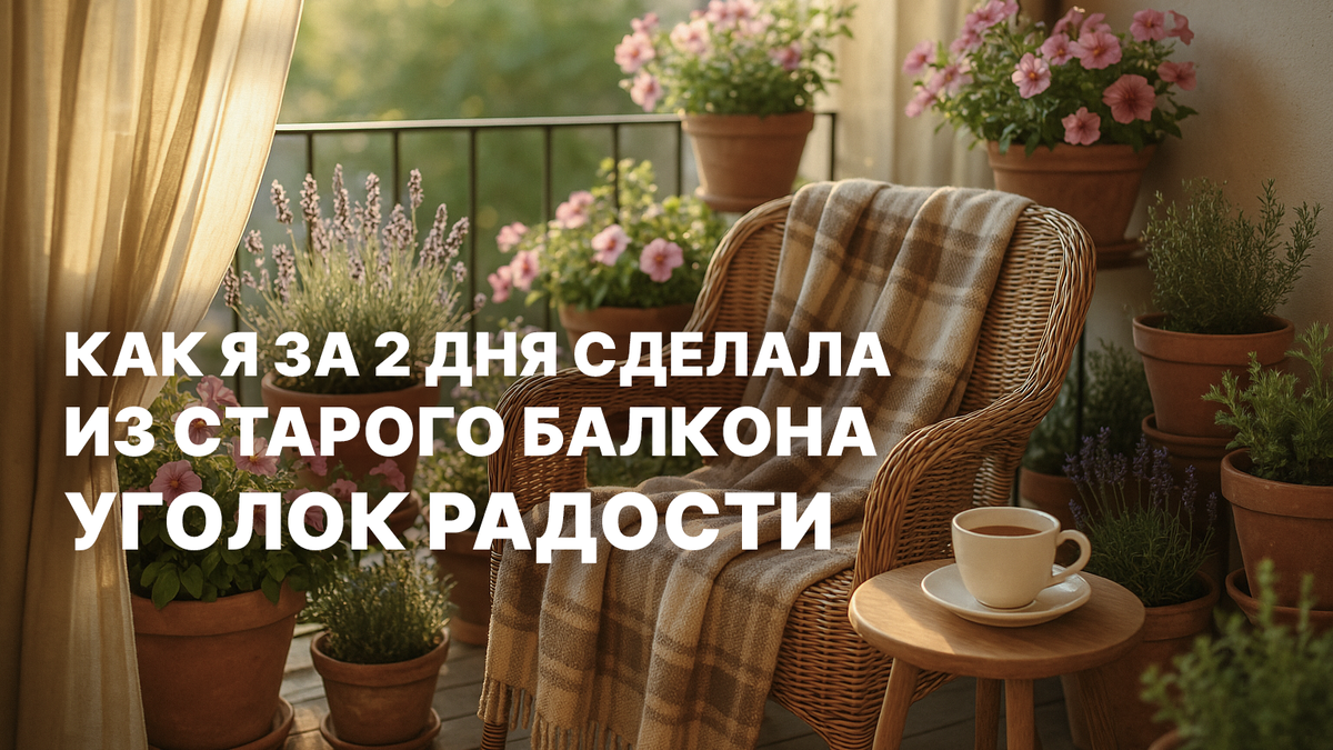 Когда-то мой балкон был местом хранения лыж, старых банок и сушилки. Знакомо? А потом в один весенний день я подумала: почему бы не подарить себе маленький уголок счастья? Без поездок, ремонтов и больших затрат. Просто — уютное место, где приятно посидеть с чаем, книгой и мыслями. И вот как всё изменилось. Честно? Это было даже приятно. Каждая вынесенная коробка — как будто убирала лишнее не только с балкона, но и из головы. И сразу стало легче дышать. Если вы ещё храните там «на всякий случай» то, чем не пользовались лет 10 — попробуйте расстаться. Освобождение — это не метафора, это физическое ощущение. Старый плетёный стул с подушкой стал первым элементом уюта. Я нашла его на «Авито» за 700 рублей. Он оказался идеальным: сидишь — и чувствуешь себя на веранде в Провансе. Даже чай как будто вкуснее. А главное — не нужно ничего сверхъестественного. Просто кресло и плед. Я посадила несколько неприхотливых растений — петунии, лаванды, немного зелени в ящиках. И каждое утро теперь начина