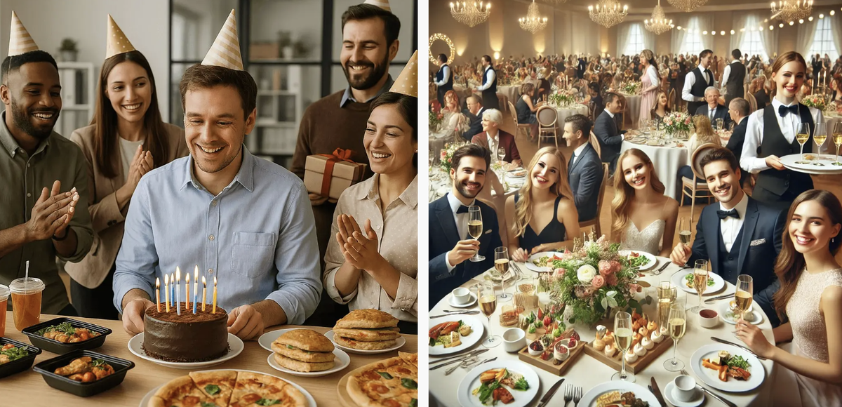 Праздничные мероприятия в офисе — это отличный способ сплотить коллектив и создать приятную атмосферу. Одним из главных элементов любого торжества является праздничное меню. Удачно подобранные блюда помогут не только насытить гостей, но и подчеркнуть особенность события. Особенно важно продумать питание, если планируется отпраздновать день рождения в офисе, корпоративный юбилей или другое знаменательное событие. Меню зависит от формата мероприятия и предпочтений коллектива. Возможны несколько вариантов: Фуршетное меню включает в себя легкие закуски, мини-сэндвичи, тарталетки, сырные и мясные нарезки. Такой формат позволяет участникам свободно передвигаться, общаться и не привязываться к столу. Удобный вариант для небольших офисных помещений. Если коллектив предпочитает более традиционный формат, можно организовать полноценный обед с первым, вторым блюдами и десертом. Подобное решение подойдет для более официальных мероприятий. Когда в офисе нет условий для самостоятельного приготовлен