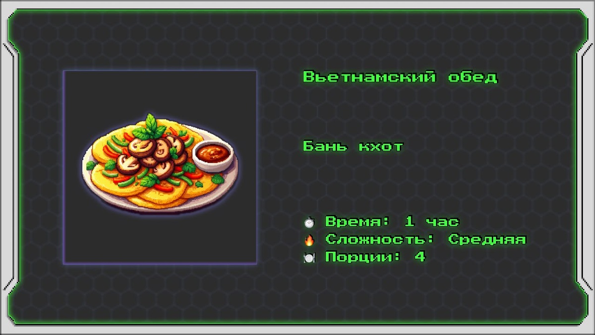 Вьетнамский обед Бань кхот (вьетнамские мини-жареные рисовые лепёшки с грибами и овощами) Этот рецепт представляет собой креативную интерпретацию традиционного вьетнамского блюда. Бань кхот — это небольшие рисовые лепёшки, приготовленные в специальных формочках, которые наполняются ароматной начинкой из грибов, овощей и пряных трав. Информация о рецепте: ⏱️ Время: 1 час 🔥 Сложность: Средняя 🍽 Порции: 4 Ингредиенты: Для теста: • 🍚 Рисовая мука — 200 г • 💧 Вода (тёплая) — 400 мл • 🌿 Кокосовое молоко — 100 мл • 🧂 Соль — щепотка Для начинки: • 🍄 Шиитаке (нарезанные пластинами) — 150 г • 🥬 Зелёный лук (тонко нарезанный) — 2 стебля • 🌶 Красный болгарский перец (мелко нарезанный) — 1 штука • 🌿 Чеснок (измельчённый) — 3 зубчика • 🫒 Растительное масло — 2 столовые ложки • 🌶 Соус чили (по желанию) — для вкуса Для соуса: • 🍶 Соевый соус — 3 столовые ложки • 🍋 Лимонный сок — 1 столовая ложка • 🌶 Чеснок (измельчённый) — 1 зубчик • 🌿 Кинза свежая (рубленая) — 1 чайная ложк