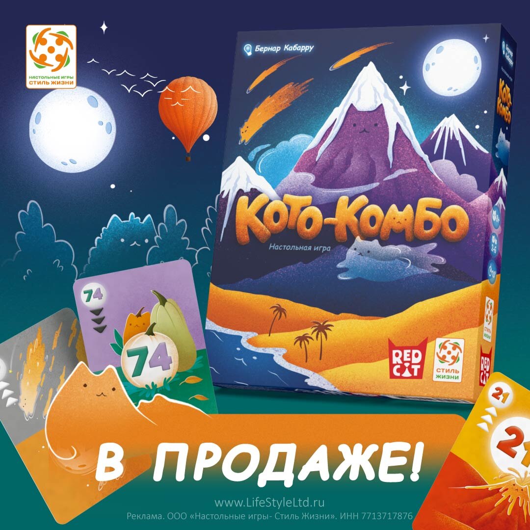 В «Кото-комбо», игре на сбор сетов с продвинутой комбинаторикой, игрокам нужно набрать как можно больше карточек в своей личной стопке, сбрасывая их с руки по одной или группами. Но помните! Карточки в этой стопке не только приносят победные очки, но и устанавливают ограничения для других игроков во время игры.