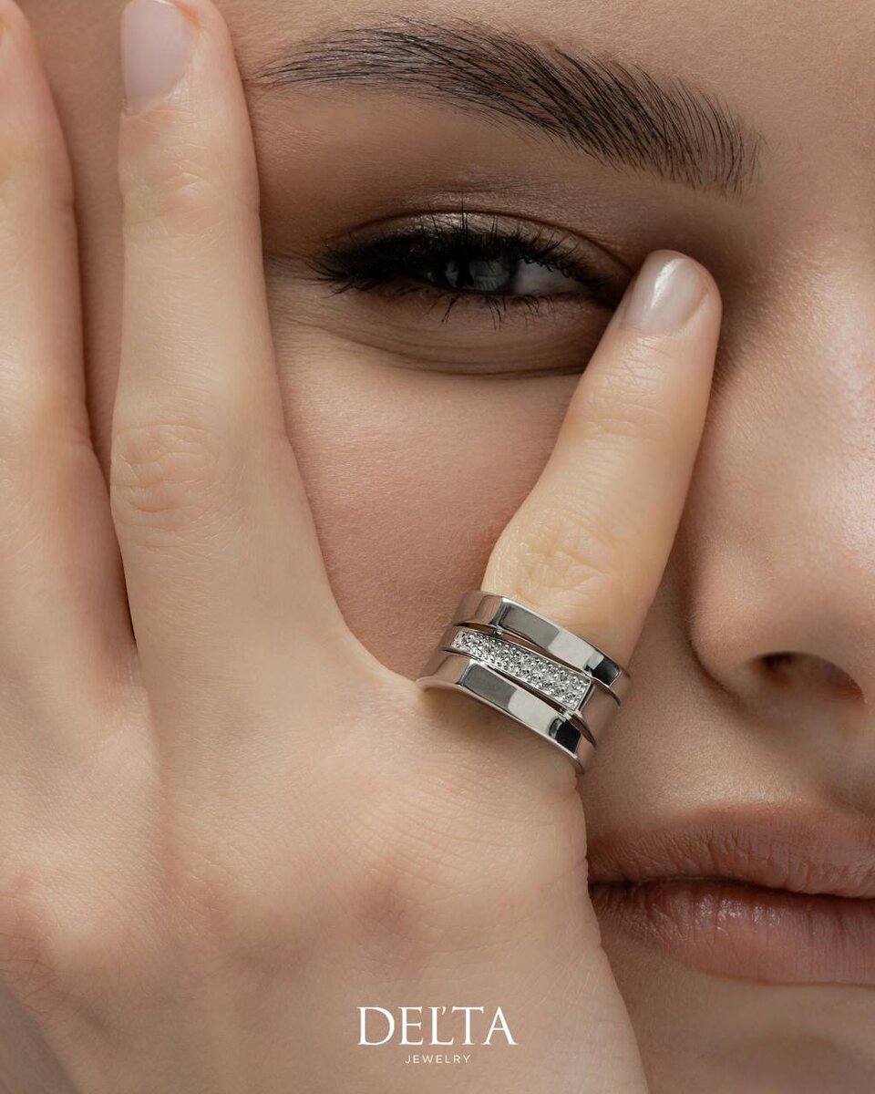 Серебряная коллекция от DELTA позволяет посмотреть на классику под другим углом. Объемные формы дополняют повседневный образ, сверкающие дорожки из камней в изделии создают акцент, а способность комбинировать украшения разными способами помогает в составлении стильных образов.