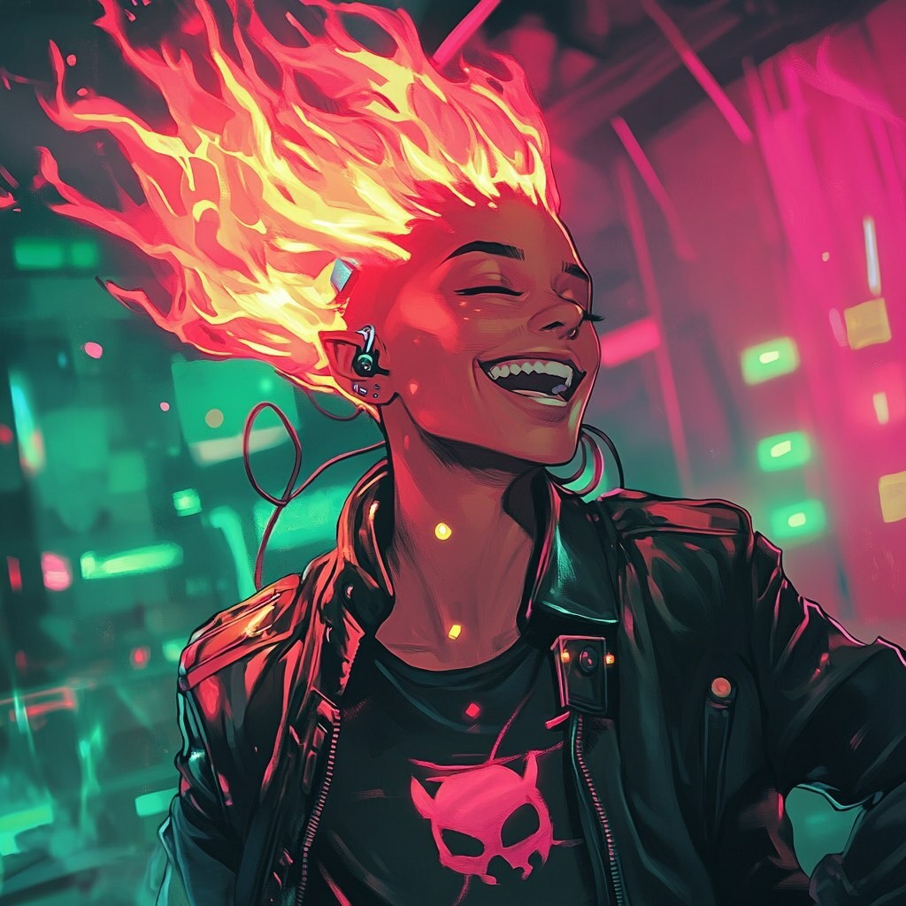 Создано на основе запроса: dungeons and dragons art of a red human whose hair is a mohawk made out of fire, wearing modern streetwear, smiling in a techno club, with pink and green lighting around them, dancing. Cool, modern --- Автоперевод: Подземелья и драконы искусство красного человека, чьи волосы - ирокель, сделанный из огня, носящий современную уличную одежду, улыбаясь в техно -клубе, с розовым и зеленым освещением вокруг них, танцующими. Красиво выглядит? 🤔 https://dzen.ru/id/65c0c65c86e4f837c27b24d7 #ИИ #AI #нейросеть #midjourney #art