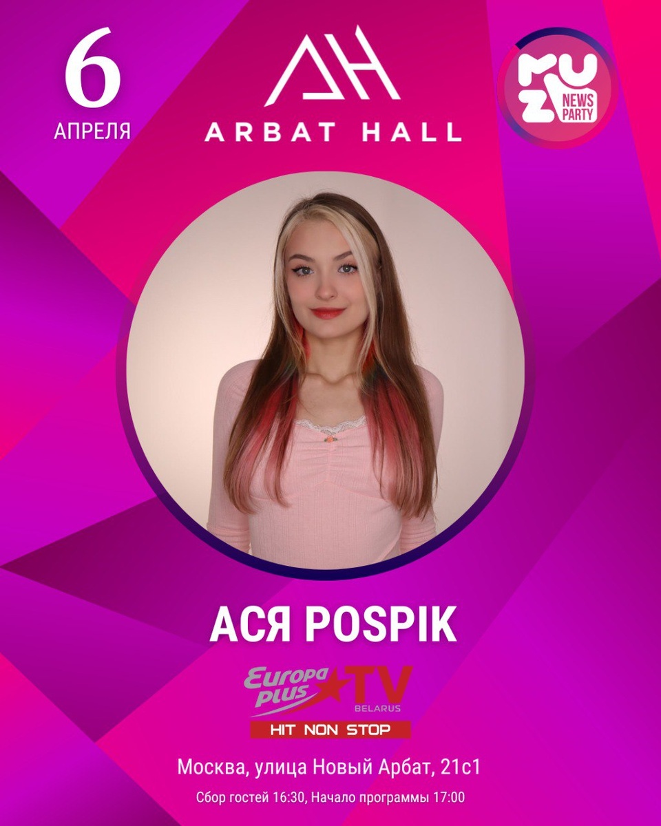 ❗️❗️❗️❗️❗️❗️ Ася POSPIK выступит на сцене MFFRUSSIA XI сезона 6 апреля 2025 года в Arbat Hall в рамках 11 сезона MFFRUSSIA состоится яркое выступление талантливой блогерши и артистки Аси POSPIK. Ее творчество объединяет харизму, энергию и уникальный стиль, которые завоевали внимание широкой аудитории. Гости мероприятия смогут насладиться живым перформансом, где Ася POSPIK продемонстрирует свое искусство, вдохновляя зрителей и создавая незабываемую атмосферу. Не пропустите одно из самых ожидаемых выступлений сезона! 🤍🤍🤍🤍 Вход свободный по регистрации: arbat-21.ru/muznews