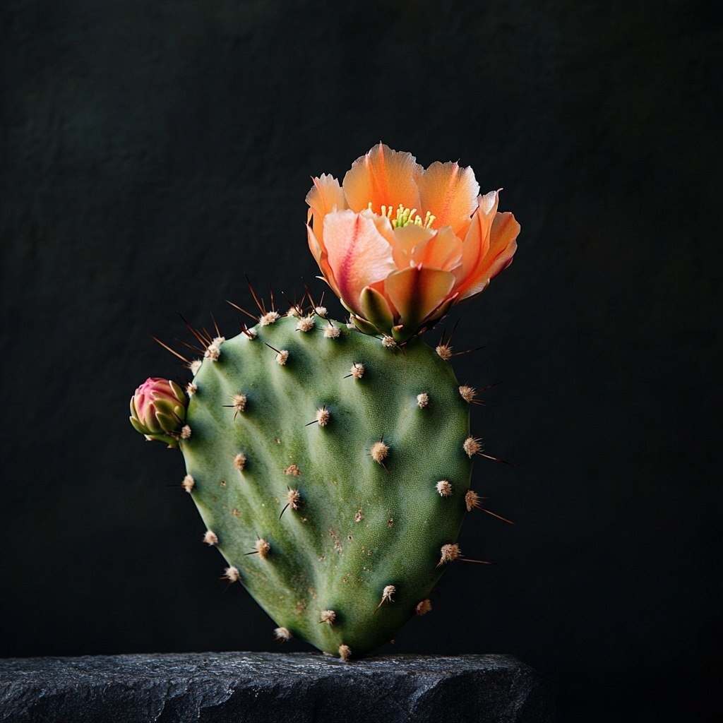 Создано на основе запроса: create a very minimalist editorial showing a prickly pear with a little flower on topgrowing, in the most